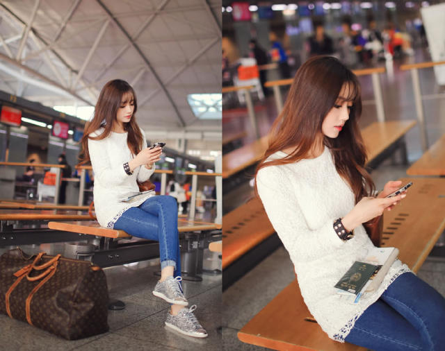 機場偶遇高顏值氣質女神!天生麗質而且楚楚動人!罕見的極品美女